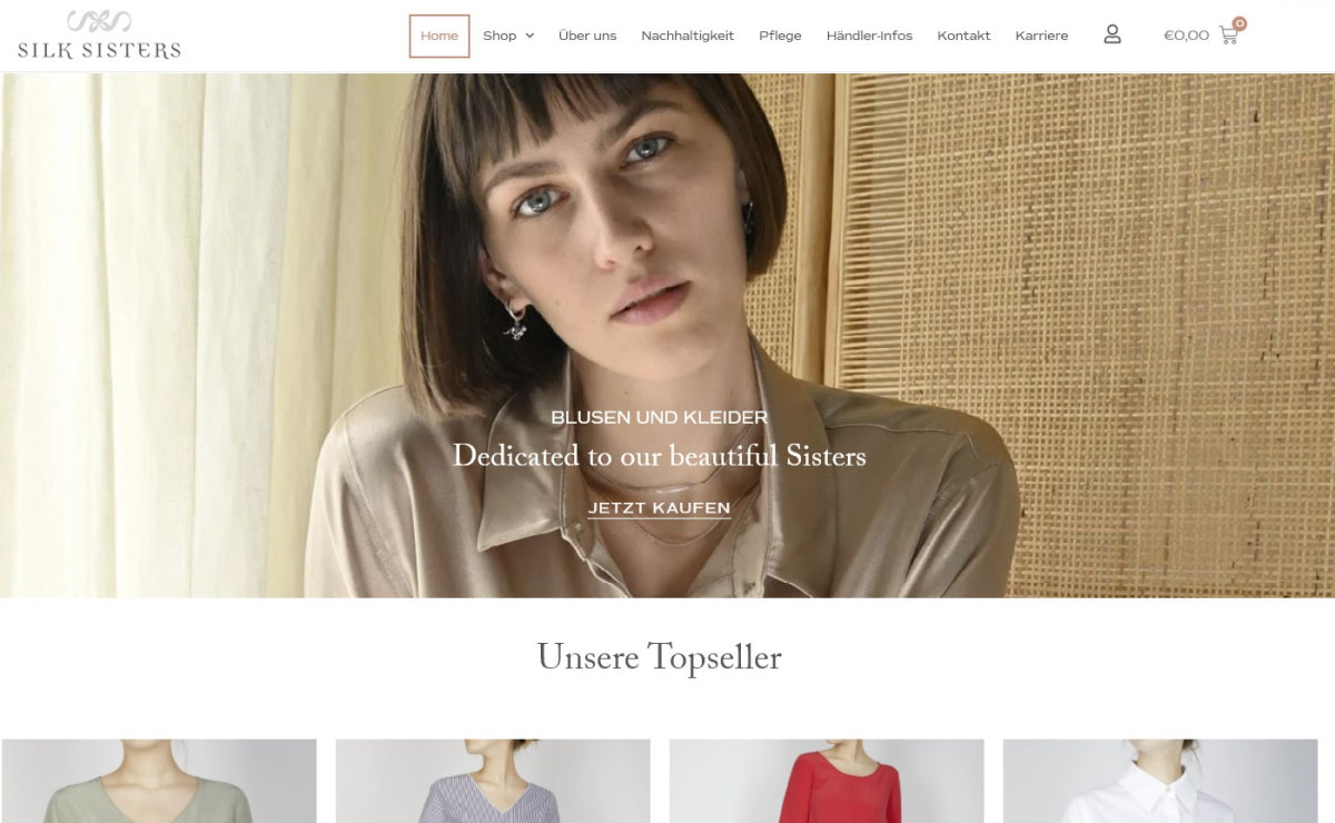 Silk Sisters ist ein Modelabel in München, das einen Online-Shop für hochwertige Damenmode aus Seide und nachhaltiger Baumwolle betreibt. Ich durfte den Online-Shop neu aufsetzen.